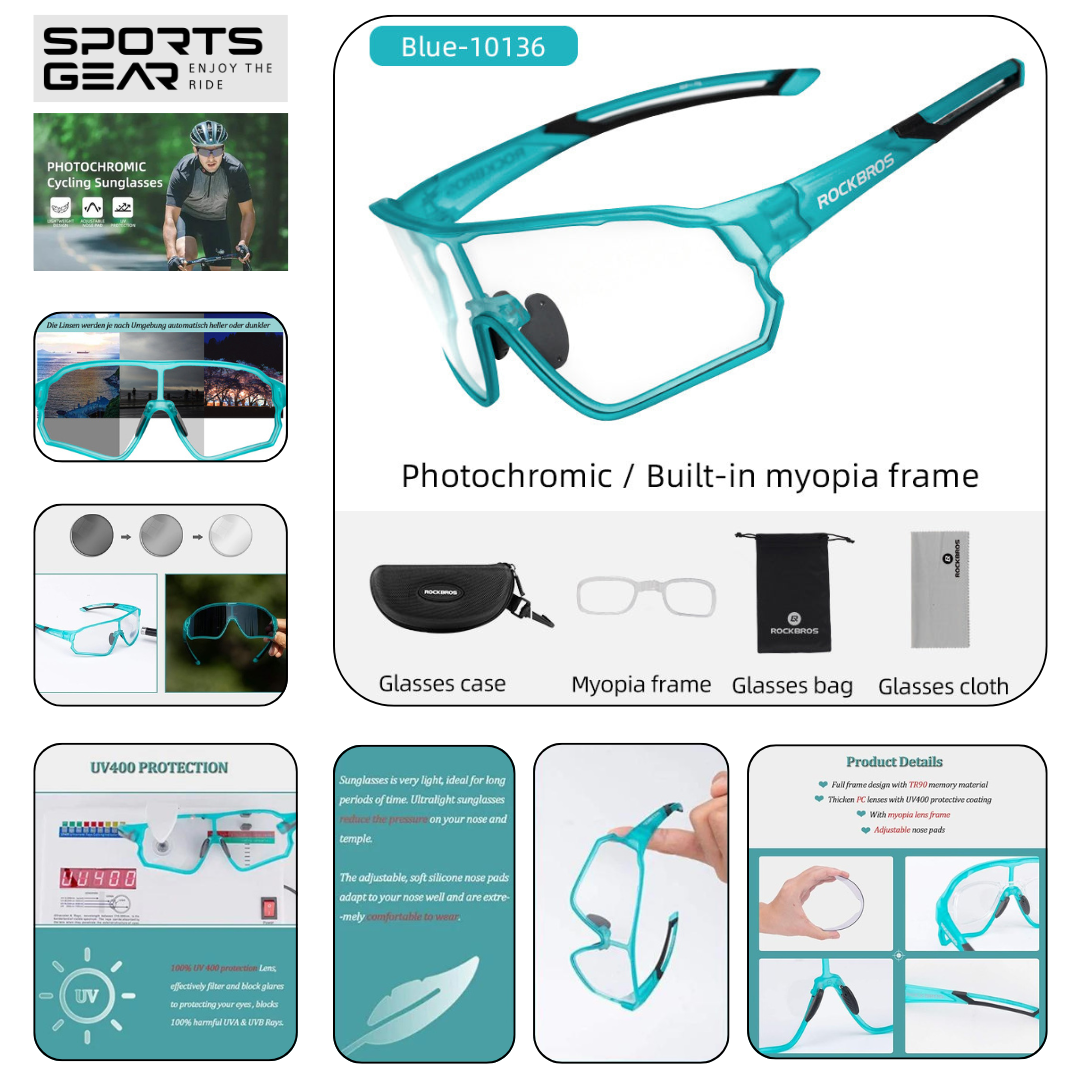 Syze sportive universale nga Rockbros, te cilat jane te persosura per ciklizmin, vrapimin dhe aktivitetet tjera sportive. Fale perdorimit te lenteve fotochromike, ato ndryshojne ngjyren automatikisht ne varesi te kushteve te drites.
