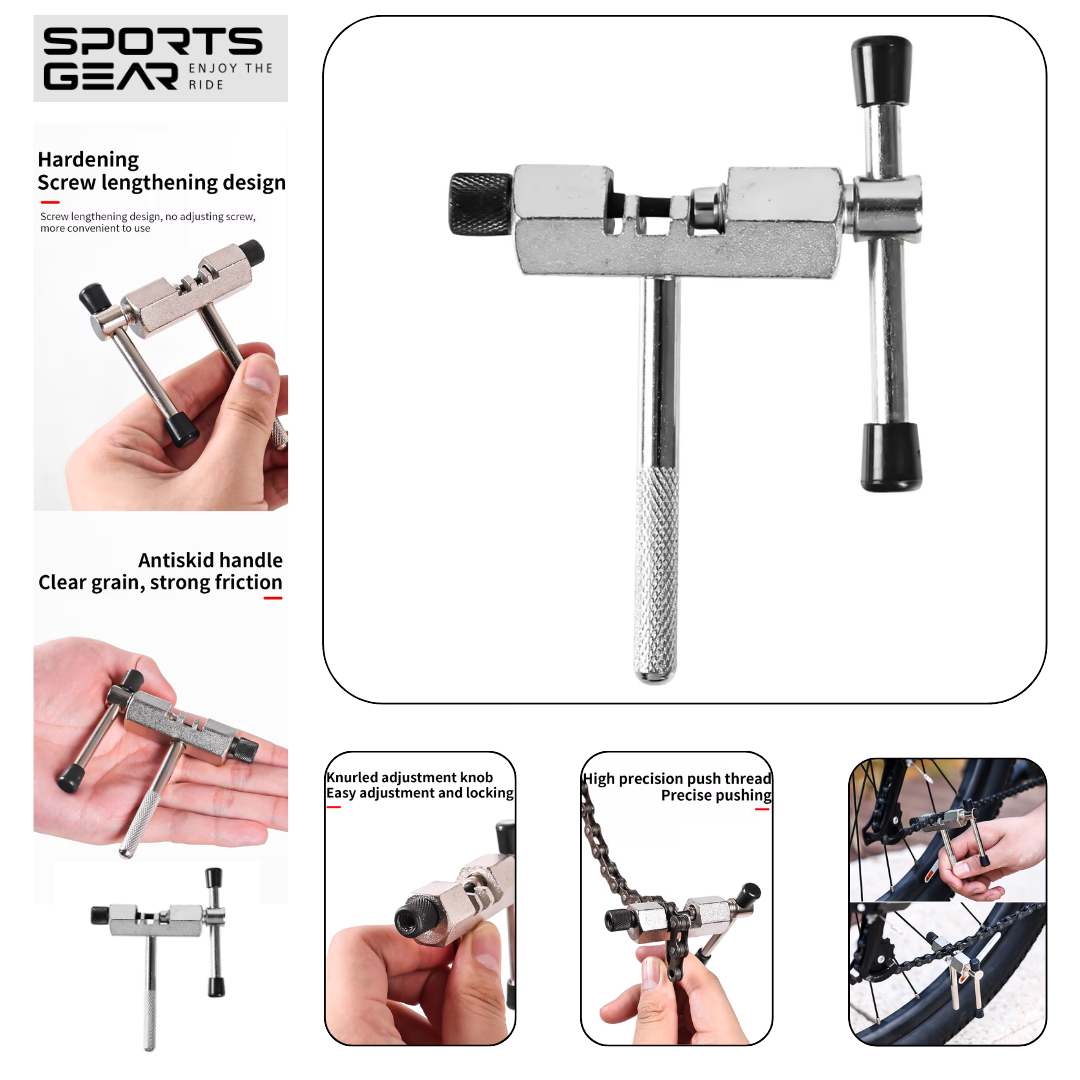 Mjet per ndarjen e zinxhirit te bicikletes: Mjet ndares i zinxhirit te bicikletes per ndarjen e lidhjeve te zinxhirit dhe heqjen e rivetave te zinxhirit, mjet per riparimin e zinxhirit te bicikletes.