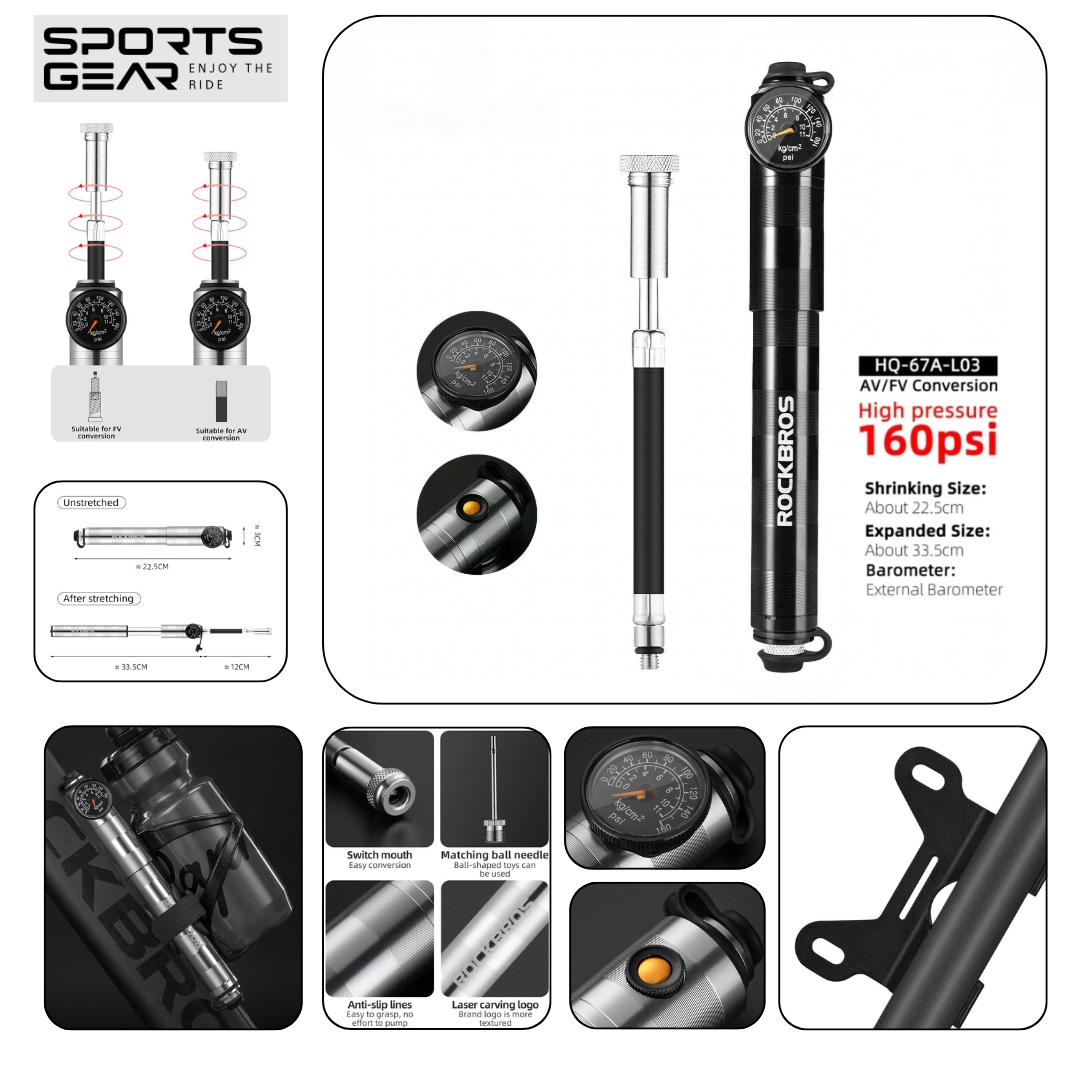 Pompa e bicikletes ROCKBROS eshte nje pompe cilesore e transportueshme dhe me presion te larte e projektuar per te fryer gomat ne presionin e duhur ne cdo moment.